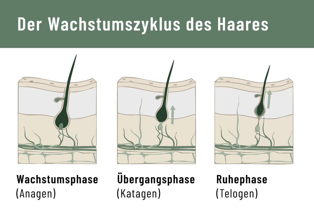 Jedes Haar beginnt tief in der Kopfhaut. In der Haarwurzel teilen sich Zellen ununterbrochen und schieben das Haar langsam nach oben. Dieser Prozess läuft in verschiedenen Phasen ab:
