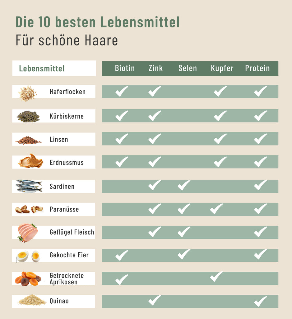 Wie du siehst, ist eine ausgewogene Ernährung mit viel frischem Obst, Gemüse, Vollkornprodukten, Hülsenfrüchten, Nüssen und hochwertigem Protein die beste Basis für kräftiges Haar. Wenn deine Ernährung nicht immer perfekt abgedeckt ist, können gezielte Haarvitamine sinnvoll sein, die wichtigsten Nährstoffe für die Haare zu ergänzen.