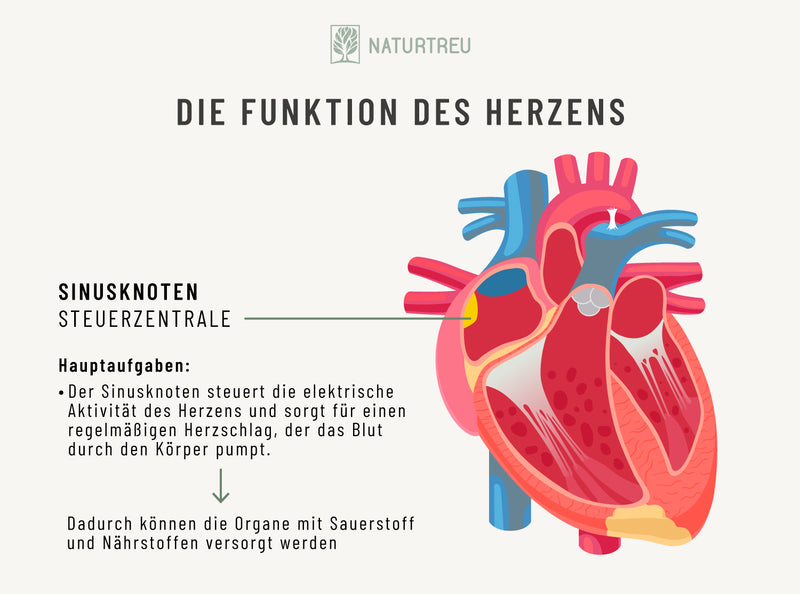 Tatsächlich wird das Pumpen des Herzens durch eine eigene Steuerzentrale geregelt – dem Sinusknoten. Dieser sendet elektrische Impulse aus, die dafür sorgen, dass sich das Herz zusammenzieht und anschließend wieder entspannt¹⁴. Man kann es sich also vorstellen, wie einen eigenen Herzschrittmacher, den jeder von uns im Körper hat und der dafür sorgt, dass der Herzschlag gleichmäßig ist.