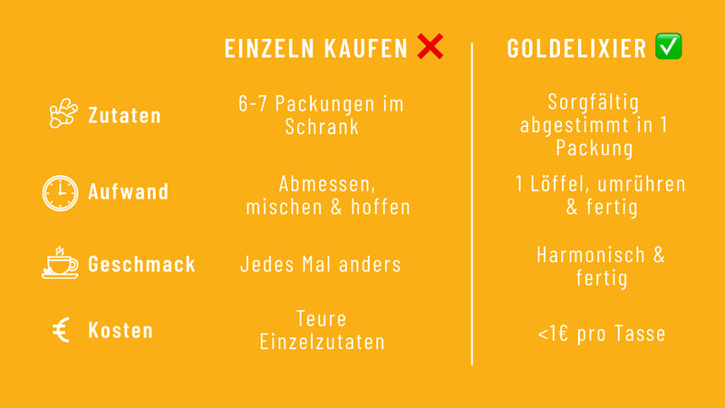 Kurkuma, Zimt, Ingwer, Pfeffer, Pflanzendrink: Alles bei der richtigen Temperatur aufkochen, sorgfältig köcheln lassen, ständig umrühren… und am Ende bleibt nur die Hoffnung, dass es auch wirklich schmeckt.