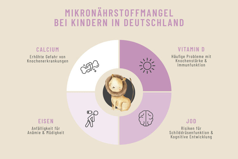 Laut Studien des Robert Koch-Instituts (RKI) erreichen viele Kinder in Deutschland nicht regelmäßig die empfohlene Menge wichtiger Vitamine und Mineralstoffe, die für ihre Entwicklung besonders wertvoll wären.
