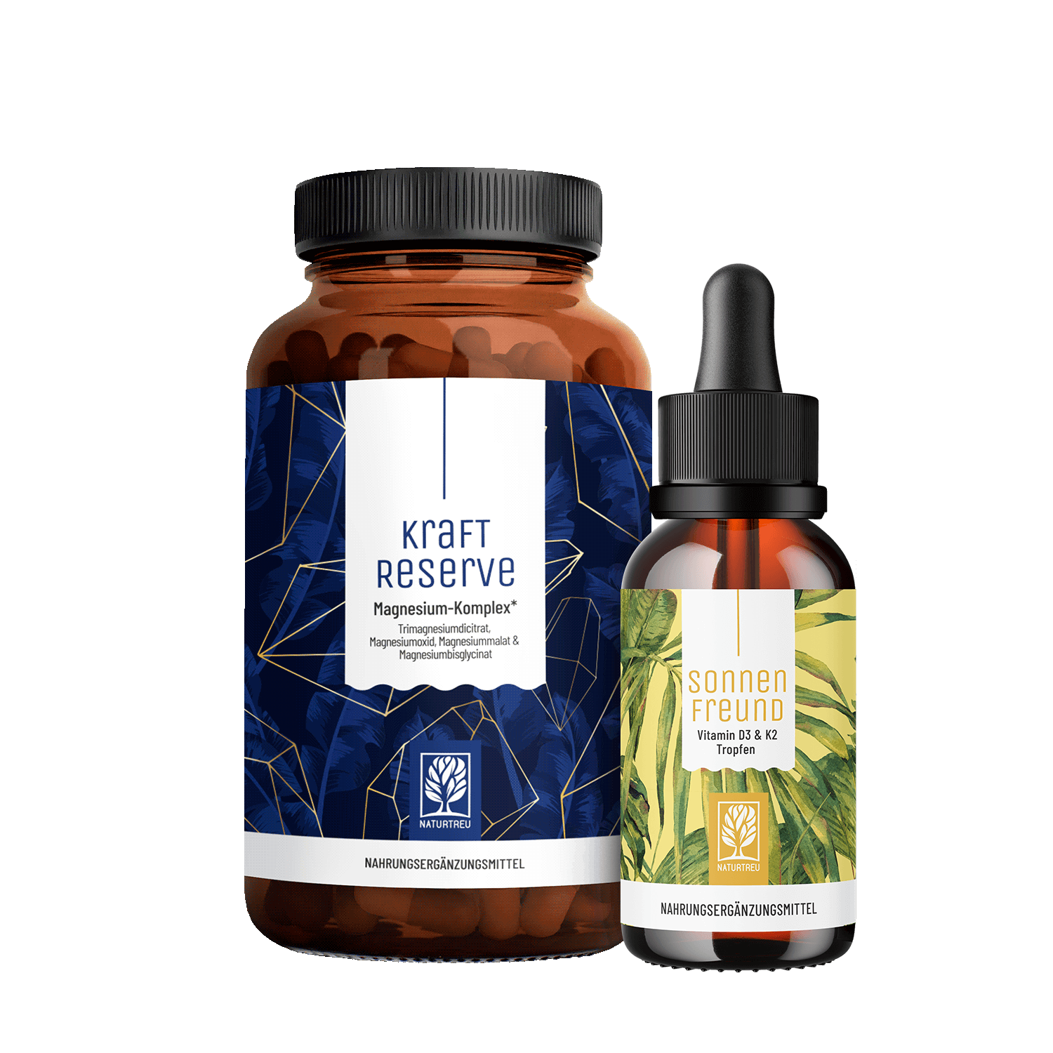 KRAFTRESERVE ist ein aus vier Magnesiumformen zusammengesetzter Magnesiumkomplex. Die verschiedenen Formen gewährleisten zum einen eine schnelle Resorption und zum anderen eine über mehrere Stunden andauernde Versorgung (dank eines Depot-Effekts). Der Komplex ist zudem sehr sanft in der Einnahme, und er enthält keinerlei unerwünschte Zusatzstoffe wie etwa Füllstoffe.