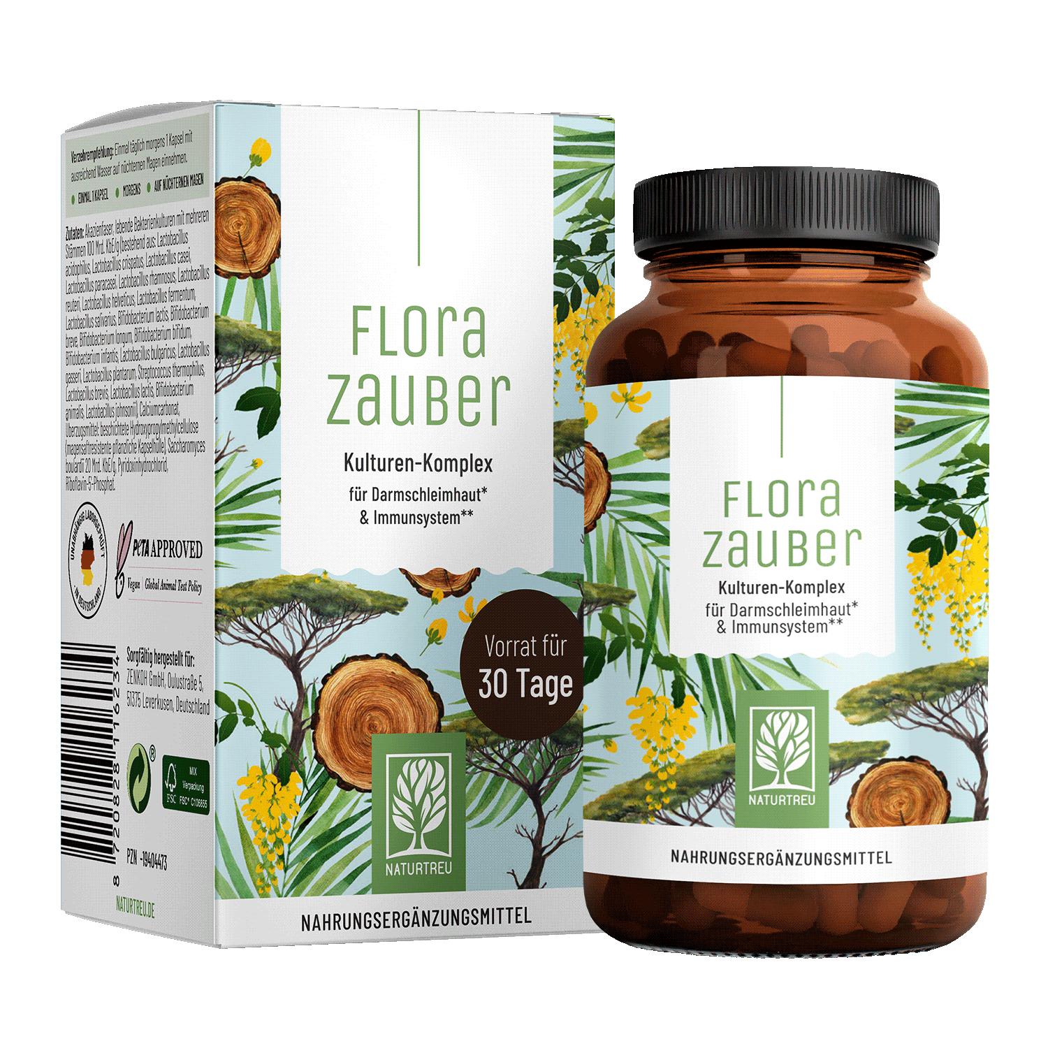 Florazauber von NATURTREU wurde von für das Mikrobiom im Verdauungstrakt konzipiert¹. Denn eine nicht optimal funktionierende Darmschleimhaut kann negative Auswirkungen auf den ganzen Körper haben³. Unterstütze deinen Körper mit einem innovativen Kulturen Komplex, der aufgrund seiner einzigartigen Zusammensetzung aus lebenden Bakterienkulturen für den Darm, Akazienfaser und B-Vitaminen zur Erhaltung einer normalen Darmschleimhaut¹ und somit auch zur Entwicklung eines normal funktionierenden Immunsystems² beiträgt!